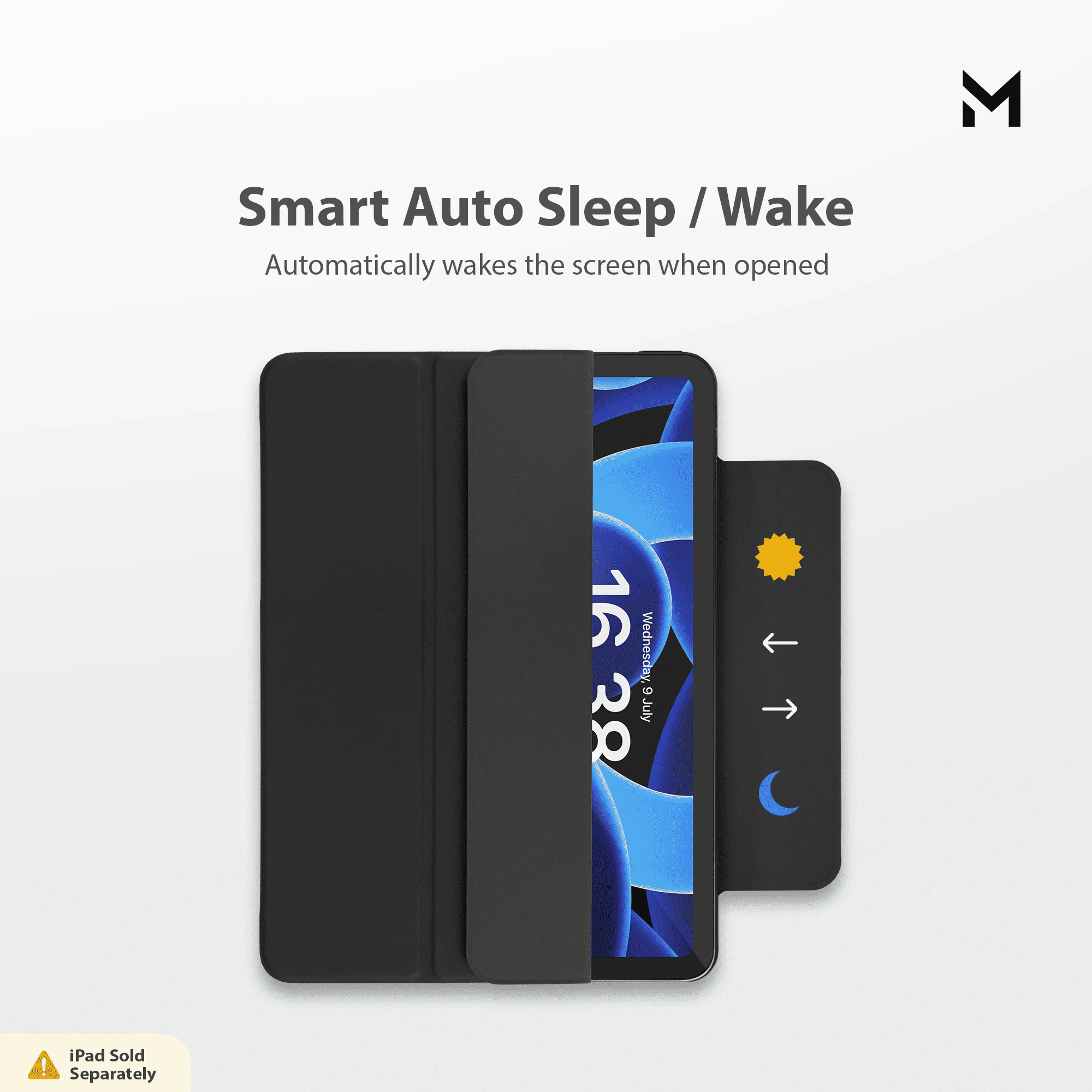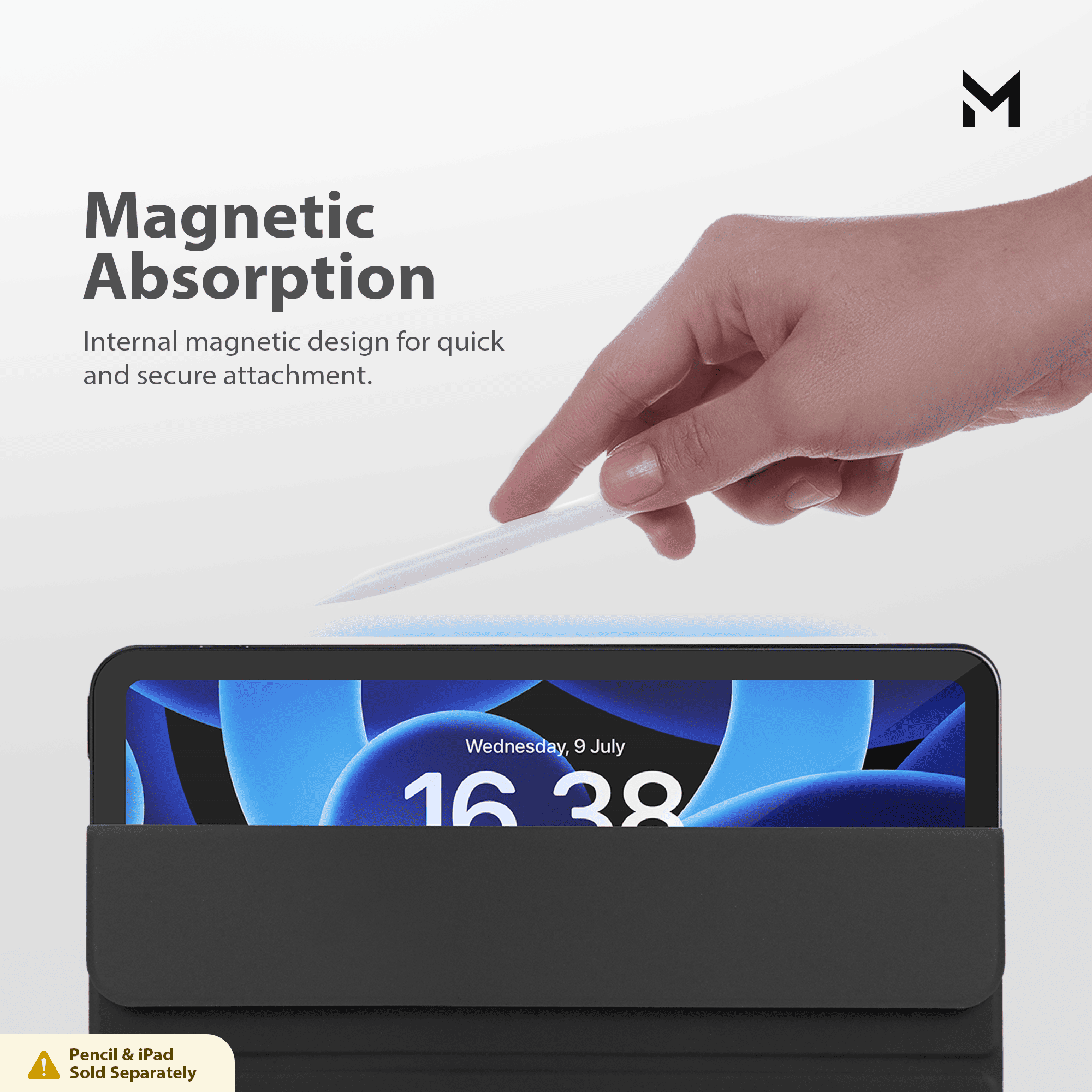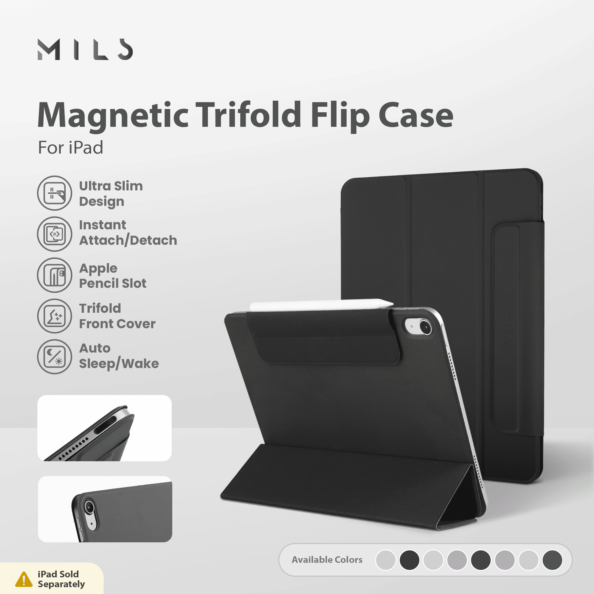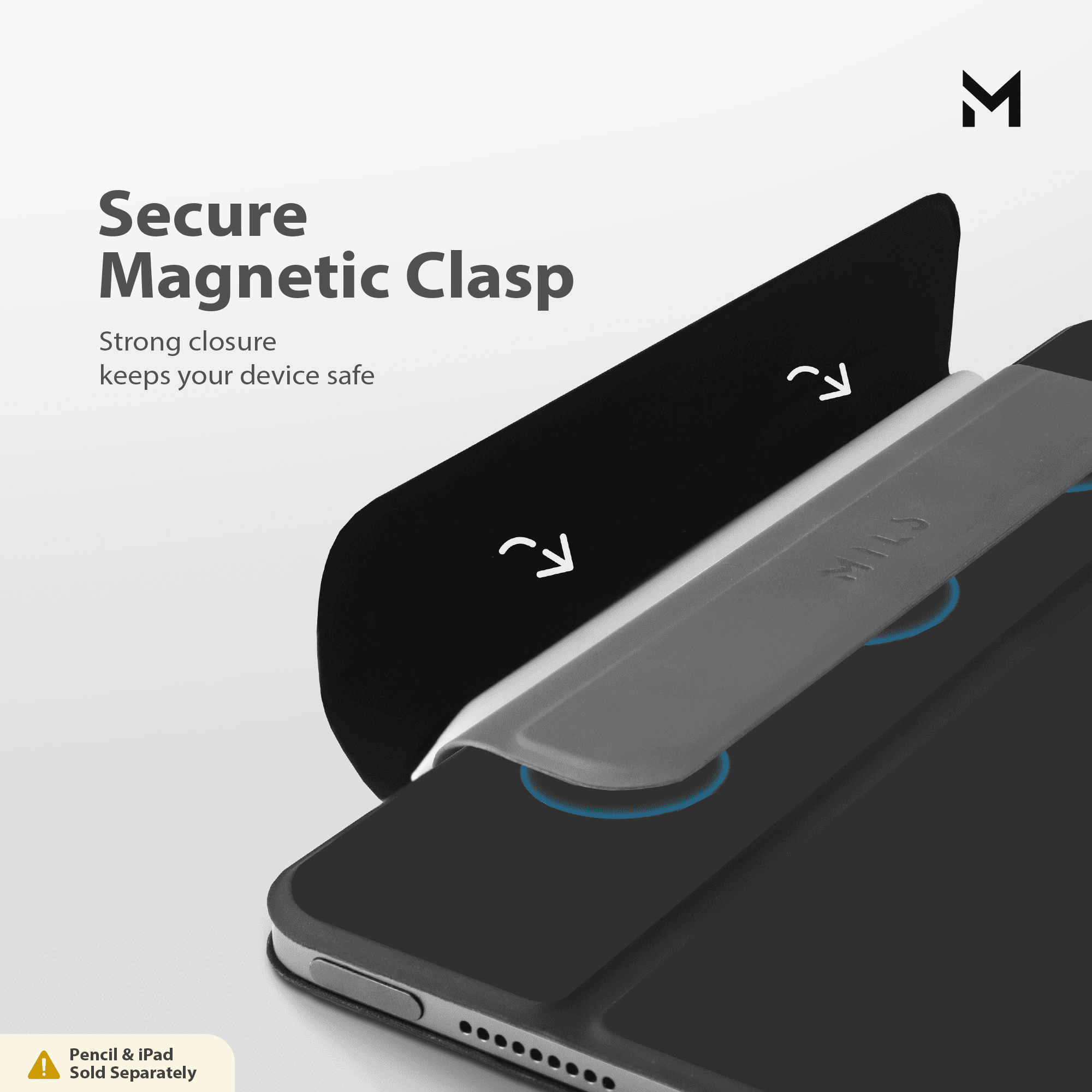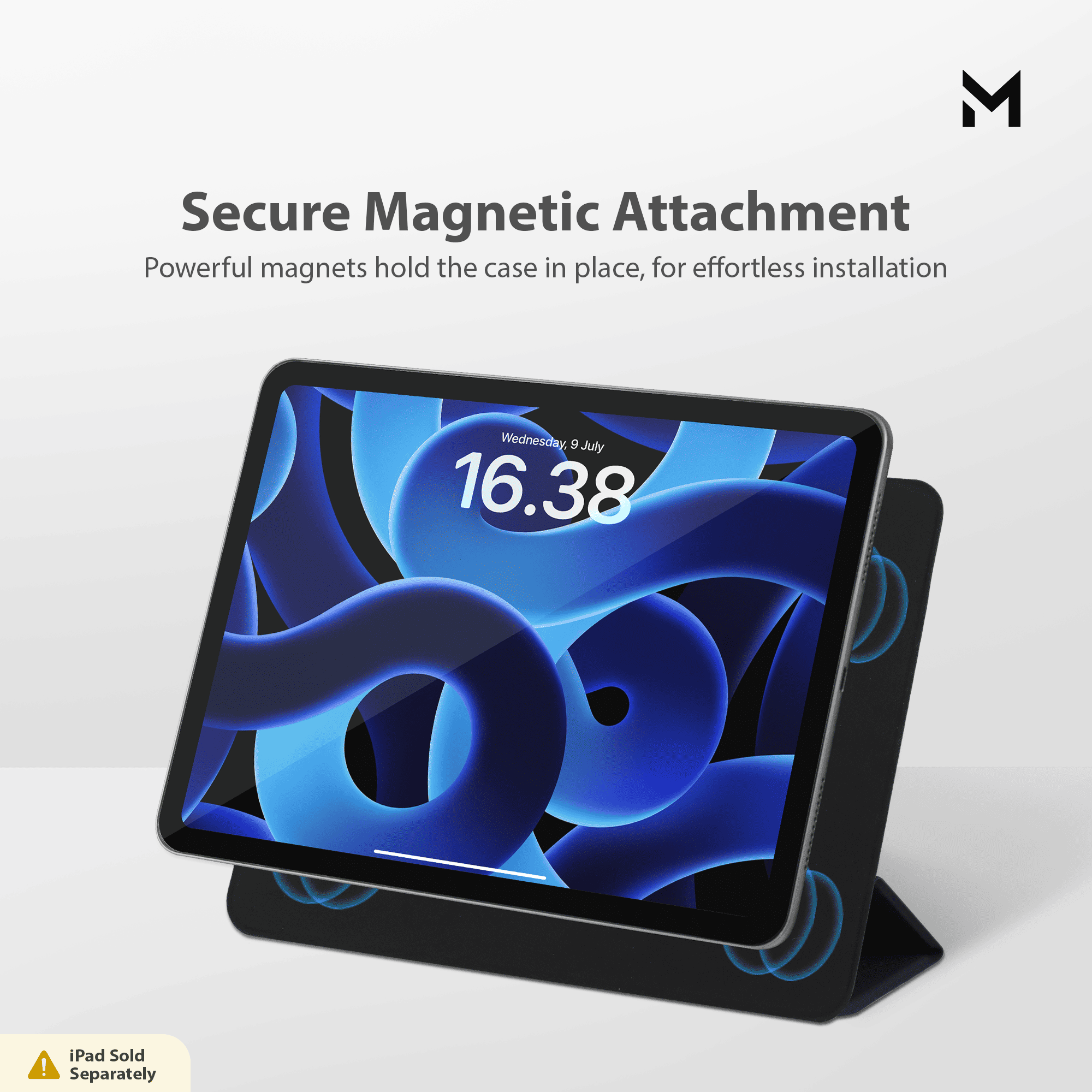 The fully magnetic design ensures that the iPad is attached to the magnetic back cover.